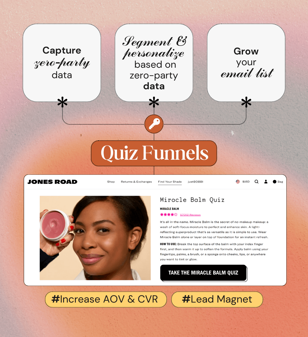 According to Cody from JRB, a quiz proved to not only increase the AOV (average order value)and CVR (conversion rate) but it was also a useful lead magnet.
