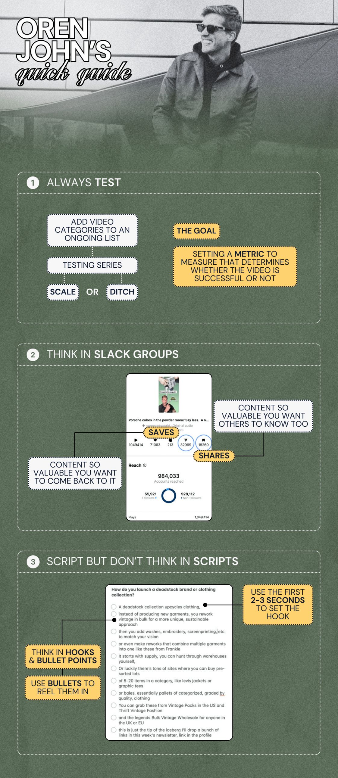 Colin, Oren, and I spent hours on Zoom brain-dumping everything we’ve learned from growing our personal channels and brand accounts with short-form into a doc. And it was over 30+ pages.